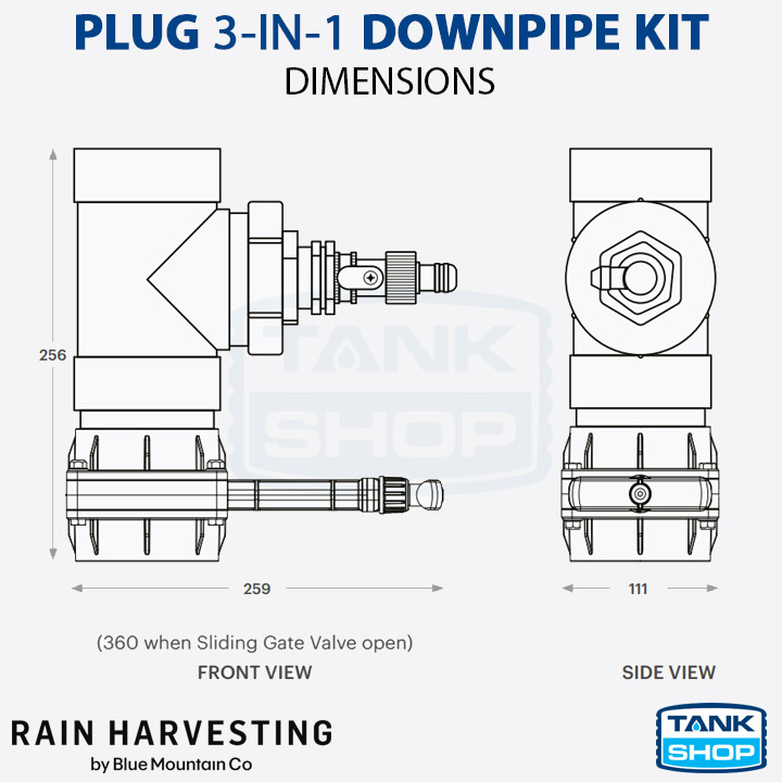 Used as a Rainwater Diverter, the Plug 3-in-1 allows you to connect your hose to a downpipe during downpours and divert the rain to top up you pool, around the garden or even to another storage tank instead of letting it just go down the drain.