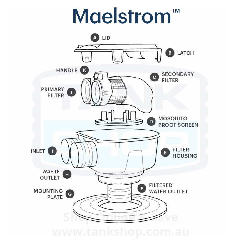 The Maelstrom (RHML01) by Blue Mountain Co, also known as Rain Harvesting, is an innovative pre-tank rainwater filter that combines super-fine filtration and super-high water catchment efficiency to give you cleaner rainwater and more of it.