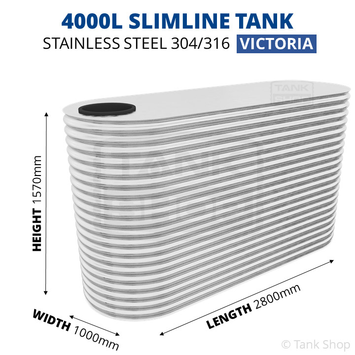 4000 Litre Slimline Stainless Steel Water Tank (VIC)- 1000mm x 2800mm x 1570mm